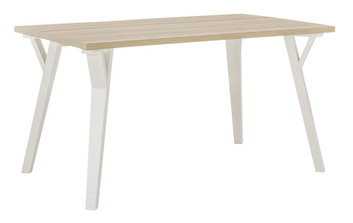 Signature Design by Ashley®Bring light to your dining area with clean lines and a bright two-tone finish. The rectangular dining table sports stylized saber legs in a white f...