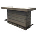 With its fashionable Quartz top insert, this bar is perfect for food and beverage preparation and serving. The bar offers a variety of storage options with both open and closed areas behind multiple doors and drawers. Whether you're entertaining a small group or hosting a large gathering, the seating for up to five makes this bar fun and functional. The integrated stem rack for glassware display and storage is a convenient feature that maximizes space and storage flexibility. The four wood-toned drawers open on heavy metal glides, keeping essentials close at hand. Plus, the extra-tall door cabinet accommodates tall bottles, and the adjustable-height wood shelf can be moved to suit your needs. This freestanding bar also features a substantial metal footrest running along the front and sides for maximum comfort. Built-in wine bottle storage accommodates seven bottles, and custom burnished nickel hardware adds sophistication to the design. Crafted from beautiful oak and ash solids and straight-grain oak veneers, this bar is accentuated by a cool taupe Moonstone finish, adding a touch of elegance to any space. Get ready to impress your guests and take your entertaining game to the next level with this multi-functional freestanding bar.