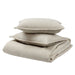 Bringing a premium look and feel to your space with bedding crafted from a soft, breathable cotton linen blend. Crisp mitered corners add a polished finish, layer with quilts and blankets for a complete bedroom look. A hidden button closure provides a clean finished style while the corner ties allow for a secure insert without any shifting. All shams include a polyester fill insert and do not require a separate insert. Bedding should be washed in cold water with mild detergents that do not contain bleach or other whiteners using a large capacity washing machine. Tumble dry on a low heat seating and remove immediately to avoid wrinkles. Villa Bedding is prewashed before packaging to avoid products from shrinking and stiffening. Our Cotton and Linen products become softer with every wash.