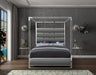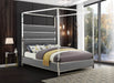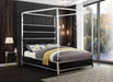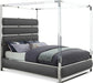 Give your bedroom a modern makeover with this Encore faux leather bed. Eye-catchingly elegant, this bed features a boxy canopy design for a grand presentation in your space. Acrylic posts add a contemporary feel to the bed's overall look, and the heavily padded headboard is upholstered in soft faux leather that's durable and tough yet gives the same supple effect as real leather. The matching footboard is also padded for a cohesive presentation in your room.