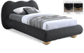 Escape to a haven of restful nights and luxurious mornings with the Hyde Boucle Fabric Bed, a versatile centerpiece that caters to your unique style and comfort preferences. The bed is enveloped in rich boucle fabric, its sumptuous texture adding depth and dimension to your bedroom. This captivating material creates a striking contrast against lighter bedding and decor, ensuring your bed remains a stylish focal point regardless of your chosen aesthetic. The appeal doesn't stop at beauty. It offers the unique option of both natural finish and black finish solid wood legs, included with each bed. This allows you to effortlessly adapt the bed to your existing decor or even transform its entire look with a simple switch. Unwind, relax, and experience the true meaning of blissful sleep with the Hyde Boucle Fabric Bed.
