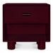 The Jolene nightstand infuses the bedroom with a touch of vibrant elegance. This deep red nightstand, expertly crafted with a rubberwood frame, offers both style and practicality. The soft-close drawer and open shelf provide versatile organization options. Playful legs and a paired-back frame with a coordinating handle create a charming silhouette that brings personality without compromising sophistication.