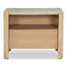 The Lane nightstand captures the essence of Scandinavian modern design. Its sleek, solid oak frame is accented by thick, curved elements that soften its silhouette, allowing its inset Italian Botticino marble top to take centerstage as its rounded overhang gracefully complements its open and closed storage that features under-mounted glides.