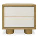 The Marcelle nightstand's minimalist silhouette, enhanced by substantial legs, strikes a balance between sophistication and subtle playfulness. A showcase of craftsmanship, it features crafted wire-brushed oak and a shagreen door front framed by antique gold metal.