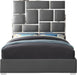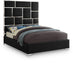 Make this Milan faux leather bed the center showpiece in your bedroom makeover. This elegant bed has a bold look with its super-tall headboard that's divided up into subway blocks for a slightly industrial feel.d metal against the soft and durable faux leather adds a stunning feel to this bed. Additional leather wraps its way all around the sides of the bed for a finished and tailored presentation that turns heads and makes your bed the star of the show.