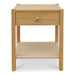 The Millie nightstand embodies understated elegance, harmoniously blending simplicity with sophistication. Artfully woven natural paper rope adorn its clean silhouette, introducing a captivating texture. A single drawer with soft-close glides and an open shelf below offer practical storage solutions. Supported by solid oak legs, this piece bridges quiet luxury with timeless appeal.