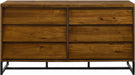 Create a distinctly contemporary vibe in your bedroom sanctuary with this antique coffee Reed dresser from the Reed Wood collection. This handsome dresser offers lots of room for holding folded apparel, and it rests on a metal base in sleek black matte for a modern touch. The hardware-free drawers lend to the chic, sophisticated and minimalist design of this dresser, which features ample room on top for displaying framed photos or keepsakes.