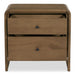 Featuring a unique waterfall edge and overhang detailing, the Riley nightstand offers captivating visual interest, underscored by its solid oak construction. The seamless design is a timeless blend of sophistication and practicality, with ample two-drawer storage.
