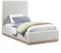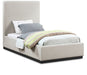 Give your bedroom a regal vibe when you add this Alfie linen textured fabric bed to the mix. The ultra tall headboard on this bed makes a bold impression from all angles and is covered in rich linen textured fabric that forms a pleasant contrast with the black finish solid wood base. The full flat design lets you easily use this bed without a box spring - a top mattress is all that's needed.