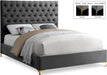 Revamp your bedroom space with this sumptuously crafted Cruz bed from Meridian furniture. The star of the show here is the headboard its tufted with deep button tufts that not only keep its thick padding in place and aloft, but also add a modern, textural look to your space. Sleek velvet upholstery feels luxuriously upscale to the touch, and the high headboard and the minimalist platform frame with metal feet add a timelessly contemporary silhouette to your space.