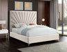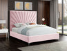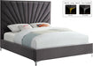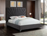 Turn up the wow factor in your bedroom with this Eclipse Bed from Meridian Furniture. Stunning velvet upholstery in a posh color brings rich elegance and style to your space. A fan-like shell pattern on the headboard is achieved with channel tufting, which keeps the padded headboard plump and full, so it supports your back while you sit up in bed, binging on your favorite shows. Metal legs finish off this bed's luxe look, giving it a modish slant.