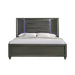 Moonstone Panel Bed is a one of a kind addition for your bedroom. Upholstered in polyethylene and consisting of textural design throughout. Crafted of solid woods and veneers. Finished in a transitional, mountain gray . Features mood lightening in headboard to create a beautiful ambiance. Perfect for contemporary or modern bedroom aesthetics.