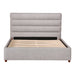 Modern and minimal. The Takio bed is softly upholstered in light grey polyester fabric for a soothing feel before you drift off to dreamland. Lightly stuffed and tufted on top of a solid wood construction for ultimate comfort.