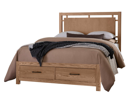 Vaughan-BassettWood Trim Upholstered Storage Bed offers a tailored; contemporary appeal. Features an upholstered headboard with oak wood trim covered in Performan...