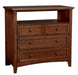 Made in the USA; this media chest with four drawers offers casual style as it accommodates your bedroom TV in any bedroom in your home. Its design elements with framed drawer fronts; tapered feet; and simple molding create a look that fits within contemporary to transitional space. The base rail is gently curved to add dimension to complete this chest of drawers.
