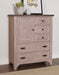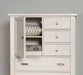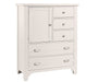 Bring Bungalow charm to your bedroom with this five drawer and a door at the top for clothing storage. Elegant and functional; this chest features with custom-designed drawer hardware includes cup pulls and knobs.
