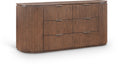 Texture takes the lead with the Astrid solid wood and oak veneer dresser. Wrapped in sleek fluted wood and finished in a deep, moody tone, this contemporary design is both bold and refined. Whether styled in a bedroom or living space, it delivers effortless storage with standout style.