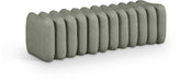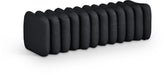 A bold and modern statement piece is the Atticus vegan leather upholstered bench that will elevate any room. Its unique, segmented design adds visual interest, while the plush vegan leather upholstery provides comfort and style. Perfectly versatile, this bench is an eye-catching addition to your home.