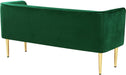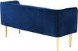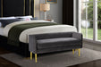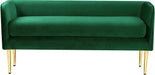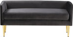 Sit or recline in exquisite comfort on this Audrey bench from Meridian Furniture. The velvet is smooth and soothing to touch, perfect for relaxing after a long day of activities. The contemporary design suits modern households while the 20-pound weight makes it easy to move around as needed. Sit the bench in the living room for extra seating or by the front door for putting on shoes.