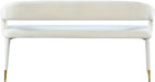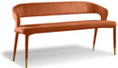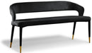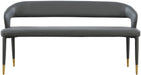 Enjoy extra seating space in your home with this Destiny bench. Its soft upholstery offers coziness while sitting, ensuring you and your guests are always comfortable. A rounded, open back provides additional comfort as well as style. Gold tipped upholstered legs give this bench an extra touch of style that complements any contemporary living space. Its long length guarantees that you ll always have extra space to seat family and friends who visit.