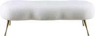Go for a luxe and lovely look in your bedroom, boudoir or elsewhere with this sensational and eye-grabbing Nube Faux Sheepskin Fur Bench. This contemporary bench oozes the charms of Old Hollywood with an updated look that makes it ideal for bridging the gap between modern and classic. Its gold-finished legs round out its look, ensuring that it's all glitz and glam from every angle. Place it at the end of your bed for a beautiful and functional addition to your personal sanctuary, or add this bench to your walk-in closet to give yourself a spot for trying on shoes and boots.