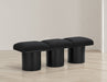 Bring valuable seating and remarkable style to your space with this Pavilion Boucle Fabric Bench, an exquisite balance of style and usability for the entryway, bedroom, and beyond. Crafted from oak veneer with a black finish, this bench has a 4-inch-thick seat cushion that's channel-tufted for a touch of luxury. The bench's columnar bases add a dash of Art Deco design, making it a captivating focal point in any room.