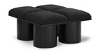 Bring valuable seating and remarkable style to your space with this Pavilion Boucle Fabric Bench, an exquisite balance of style and usability for the entryway, bedroom, and beyond. Crafted from oak veneer with a black finish, this bench has a 4-inch-thick seat cushion that's channel-tufted for a touch of luxury. The bench's columnar bases add a dash of Art Deco design, making it a captivating focal point in any room.