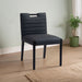 A perfect fusion of modern elegance and eco-friendly luxury is the Aimee vegan leather dining side chair. Upholstered in sleek vegan leather, this chair offers a chic, contemporary look while maintaining a commitment to sustainable living. The padded, quilted design featuring solid black wood legs creates a stunning contrast between its soft upholstery and minimalist frame.