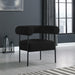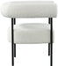 Modernize your home with this Blake accent chair. Featuring rich boucle fabric and a matte metal frame, its contemporary design is sure to catch the eye of all your house guests. Crafted from a mixture of iron and foam, this accent chair is sturdy enough to seat just about anyone. Its curved back provides a comfortable resting place for your spine, and its thick foam cushion gives you a plush place to sit.