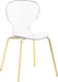 Infuse modernity into your dining room with this Clarion dining chair. A translucent seat and back add a bold and contemporary look to your space while relying on the strength of Lucite polycarbonate to ensure sturdy strength and resilience. A classic metal base with a luxe finish contrasts nicely with the translucent top, giving your room a modern vibe that's hard to ignore yet basic and simple at the same time.
