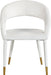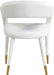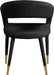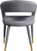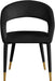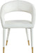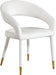 Settle in for a meal with friends seated in this Destiny dining chair. Soft upholstery makes this dining chair a sleek and inviting option for pairing with your favorite dining table. The rounded back adds comfort to mealtime and lends the chair a chic, eye-grabbing touch, while tapered legs topped with tips give the chair an elegant finish.