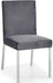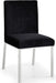 Make dinnertime a stylish affair when guests are seated in this Opal Collection velvet dining chair from Meridian Furniture. The back of the chair features an intertwined sculptural design with a geometric motif for a modish effect that increases the wow factor in your dining space. Thick, plump seat and back cushions make sitting more comfortable, and each cushion is topped in crushed plush velvet for a luxurious touch and soft feel against the skin. The chair's base and back feature stainless steel construction with a finish for a contemporary vibe and sturdy support.