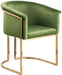 Enjoy body-hugging comfort at every meal with this Tierra velvet dining chair. Rich velvet covers the seat, arms and back of this comfortable yet beautiful chair. The frame is made from durable metal for resilient, long-lasting use, and it features a brushed brass finish for a look that's both modern and elegant. Pair it with the table of your choice for a modern look in your dining room space.