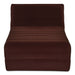 The Verity chaise features a plump form enveloped in warm brown velvet upholstery for a touch of elegance. Wide channel detailing adds texture and visual interest, complemented by rich, warm tones that tell a story of comfort and coziness, as the high-density foam seat provides a plush seating experience.