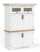 Whether you're working from home or just need a place to organize crafts and paperwork, this Americana Modern Workstation with LED Light is sure to be a favorite. Packed with functionality, it features a pull-out tray for an extended work surface, energy-efficient LED lighting on a dimmer, generous storage and dual AC and USB outlets—all in a fashionable cotton white finish with contrasting wood-grain accents. When you're done, just close its doors to keep papers and clutters hidden from sight.