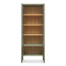 Inspired by classic millwork, the Hannah tall cabinet's timeless proportions with tempered glass inserts offer a glimpse of treasured items, while a solid pine frame ensures enduring appeal as dowel legs and bronze hardware infuse subtle softness.