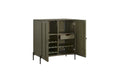 The Tarrington Bar Cabinet in a Pistachio finish with Hickory veneers is a stylish and functional piece designed to elevate your home entertaining. Its distinctive finish highlights the natural beauty of the wood, while the sleek profile is supported by a sturdy metal base for a modern touch. Inside, the cabinet offers built-in wine racks and stemware storage to keep your collection neatly organized and easily accessible. A convenient pull-out drawer adds space for bar tools and accessories, while the spacious compartments are perfect for storing bottles, mixers, and glassware. Combining rustic charm with practical design, this bar cabinet is an elegant centerpiece for any dining or living area.