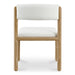 The April dining chair fuses playful proportions with material-driven design. Its minimal, modern aesthetic is highlighted by softly curved geometric legs and plush cushions, while soft upholstery ensures enduring beauty.
