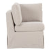 The Fable slipcover dining corner chair's snug-fitting, washable slipcover with inverted pleats offers a tidy appearance and effortless upkeep. A slight tilt encourages a relaxed seating posture with a pillow back and seat cushions for comfort. Designed to be modular, it includes alligator clips to connect with other pieces in the collection, adapting seamlessly to various dining table sizes.