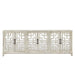This sideboard availbale in a brown and white finish is crafted with kiln-dried reclaimed pine, accentuated with iron handles and mirror fronts. With its unique geometric design, the Arley 6Dr Sideboard in white uses six reflective doors to expose three removable shelves.
