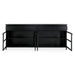 Built differently. The case for going full metal. Henry brings something different to the mix—full metal construction with a clean, transitional frame that adds texture and polish to any space. Four doors, half-glass and half-solid, offer a sleek way to show off what you love and stash what you don’t. Four doors, four drawers, and four shelves keep things tidy. Finished in matte black powder-coated steel, it’s a storage piece that keeps its cool—on display and behind the scenes.