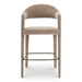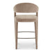 The Martens bar stool features an open barrel back and a continuous curve from leg to frame. Its fabric upholstery is complemented by generously padded seating, marrying comfort with a clean, uncluttered design. Armrests introduce a note of formality, while the airy back lends a touch of lightness and sophistication.