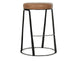 The Sawyer Counter Stool features luxurious top grain leather with detailed stitching, paired with a hammered iron base for a stylish, industrial look. Its sturdy design and intricate details make it a standout piece for your kitchen island or bar area.