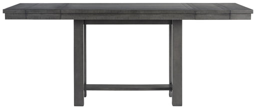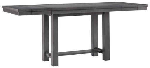 Signature Design by Ashley®Going gray in the best possible way. This counter height dining table wows with an utterly on-trend smoky finish and plank styling. Easy-on extensi...