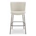 The Early bar stool is an elegant fusion of minimalist design and comfort that features a slim metal frame in a blackened bronze finish. Its seat and comfortably curved back are upholstered in durable, easy-to-maintain Performance fabric. It complements any dining setting, especially alongside wooden tables, presenting a clean, cohesive look that invites sophisticated ease.