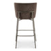 The Early bar stool is an elegant fusion of minimalist design and comfort that features a slim metal frame in a blackened bronze finish. Its seat and comfortably curved back are upholstered in soft fabric. It complements any dining setting, especially alongside wooden tables, presenting a clean, cohesive look that invites sophisticated ease.