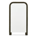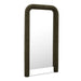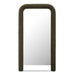 - Large floor mirror with modern, soft corners with ruched detail & soft-touch fabric upholstery