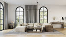 Classic meets contemporary in the bold personality of Leland. Refined yet commanding, each of these distinctive tables looks as though it could be carved from a single block. An espresso finish highlights the exquisite beauty of its cathedral oak veneers while Graphite hardware adds the finishing touch.