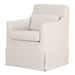 The Lydia slipcover dining chair speaks to traditional style, featuring curved armrests and a snug, neatly tailored slipcover with inverted pleats that is washable and easy to maintain. It includes a lumbar pillow for additional back support and comfort, while available rollers allow for functional convenience.