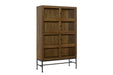 The Tarrington Bookcase in a warm Almond finish is a versatile storage and display piece crafted with premium Hickory veneers that highlight the natural beauty of the wood grain. Designed with clean lines and timeless character, this bookcase features two glass-paned doors that open to reveal multiple shelves, perfect for showcasing books, collectibles, or decorative accents. The interior shelves provide generous space for organization, while the transparent doors keep items protected yet visible. Resting on a sturdy metal base with a dark finish, the bookcase strikes a balance of elegance and industrial charm, making it a striking addition to living rooms, offices, or dining spaces. With its blend of durability, function, and refined design, the Tarrington Bookcase adds both practicality and style to your home.